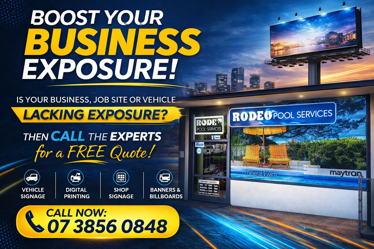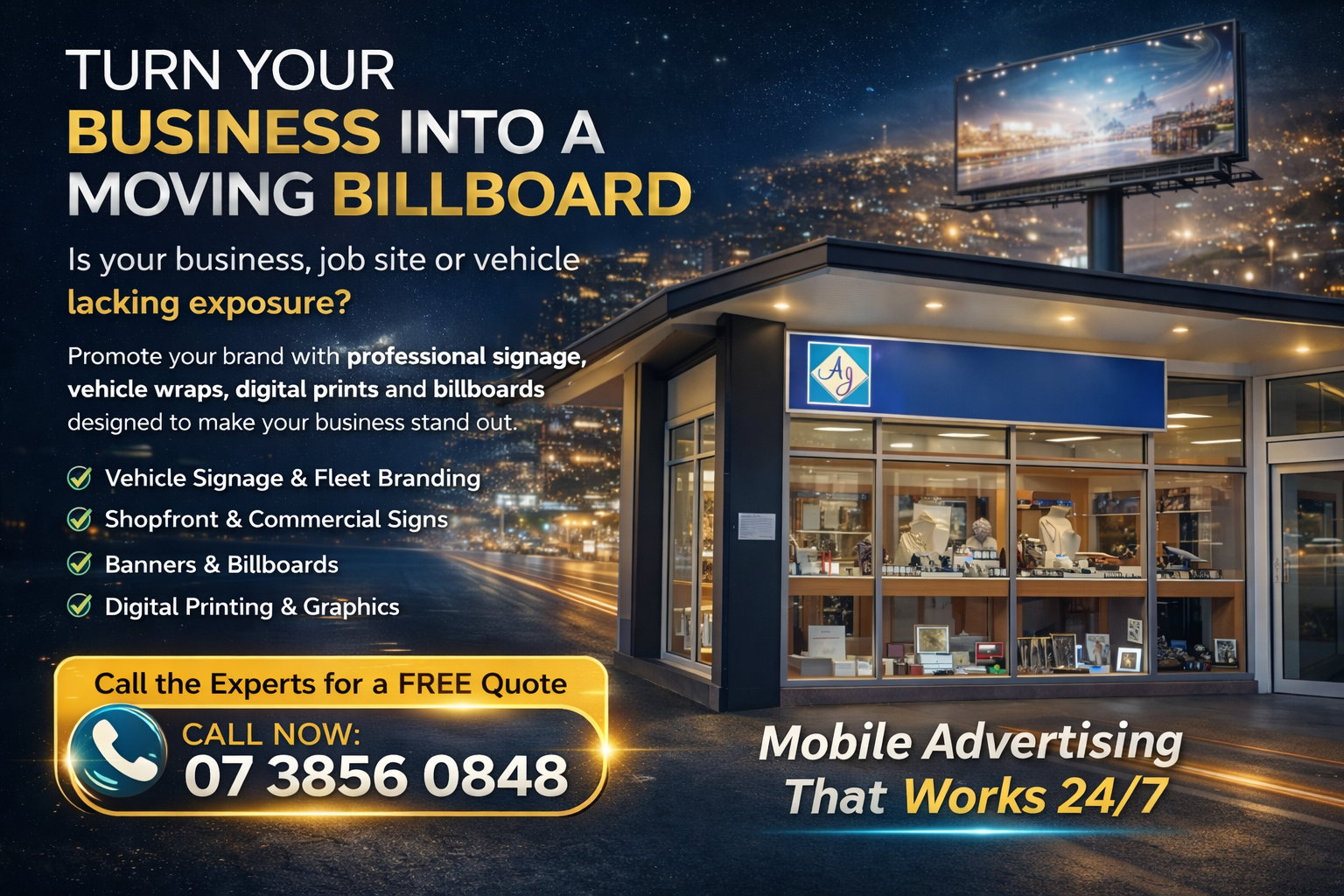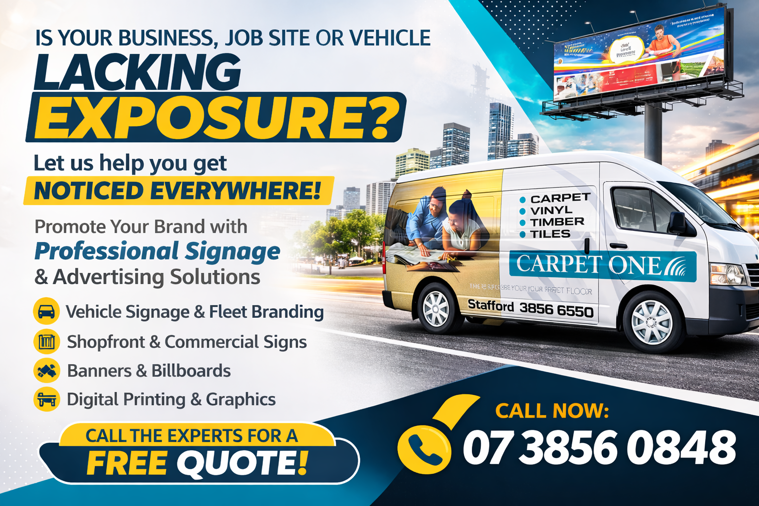 We specialize in corporate signage travelling throughout Queensland & NSW. and regional centres regularly.